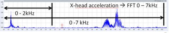 Figure 1: Crosshead guide acceleration data from 0-7 kHz during an event (in “g”).