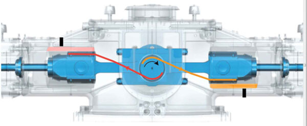 Looking at the working principle of reciprocating compressors the crosshead clearly is a focal point. Here, the rotating movement of the crankshaft is transformed into a reciprocating (linear) movement of the piston rod. It is the central component where the major drive forces are transferred from the running gear to the crosshead and ultimately the piston rod assembly.