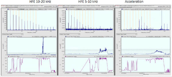 Over three months, increasing HFE and vibration signals led to a scheduled shutdown, preventing major damage.